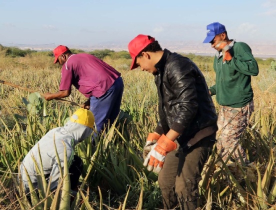 The Jordanian valley is a place known for the Dead Sea, a big Salt Lake intensely visited and at- tended thanks to the beauty and healing properties of its sludge and its salts. The particularly sandy soil, with high composition in salt, and the climate are favourable for the development of the plant; in fact, during winter the temperature never goes below 10 degrees. Aloe vera has been planted from Ghor Mazraa (south coast of Dead Sea), to Ghor Safi (capital of the Jordan valley), till Feifa (village who hosts a natural reserve, paradise for birdwatchers) and Maamoura (50 km south of the Dead Sea).